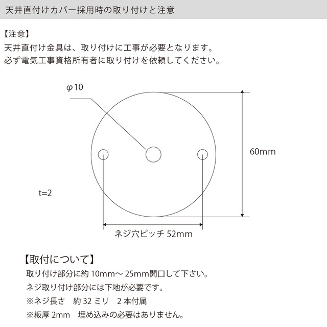 天井の配線器具や設置方法に応じて、取付仕様をお選びいただけます。