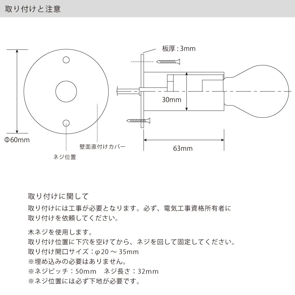 size:Φ30×H63(mm) 壁付け部分Φ60×3(mm)