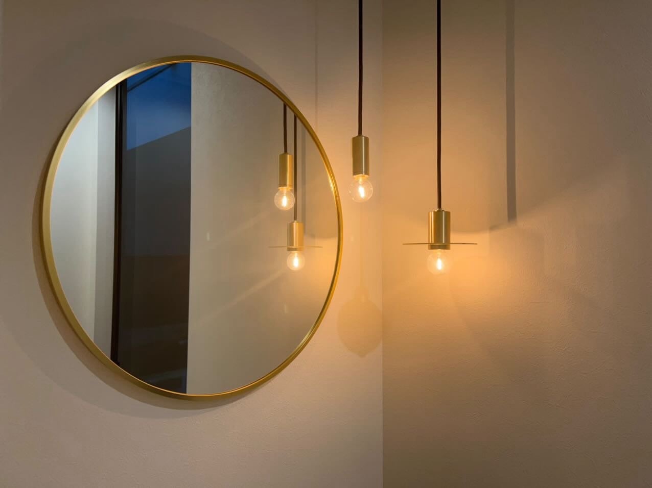 プレートに映り込む灯とシェードが生み出す陰影は、シンプルながらも真鍮が持つ特有の神秘性を引き立てます。