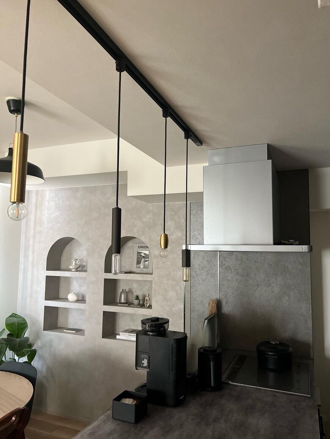 標準仕様は引掛けシーリングです。ダクトレールへの取付、天井直付け、配線部をすっきり見せるフランジカップにも対応しています。