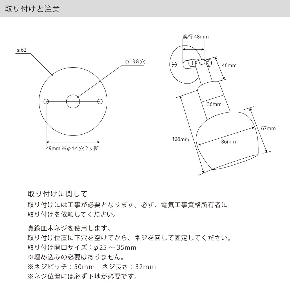 取り付けには「電気工事士」の資格が必要となります。